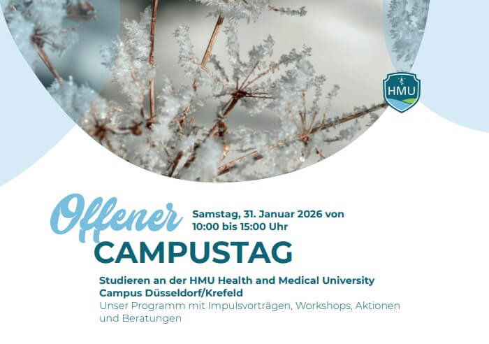 Gerne beraten wir Sie im Rahmen des Campustages individuell zum Studienangebot der HMU Health and Medical University. Wenn Sie ein kostenfreies Beratungsgespräch in Anspruch nehmen möchten, geben Sie das gerne bei Ihrer Anmeldung über untenstehenden Button mit an. Wir vereinbaren dann zeitnah mit Ihnen einen passenden Termin und beraten Sie zum Bewerbungsprozess, zu unserem umfangreichen Studienangebot und berichten vom Campusleben im Medienhafen.